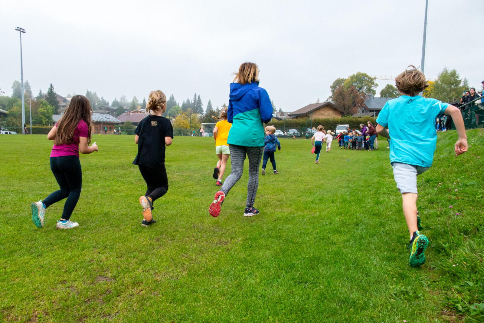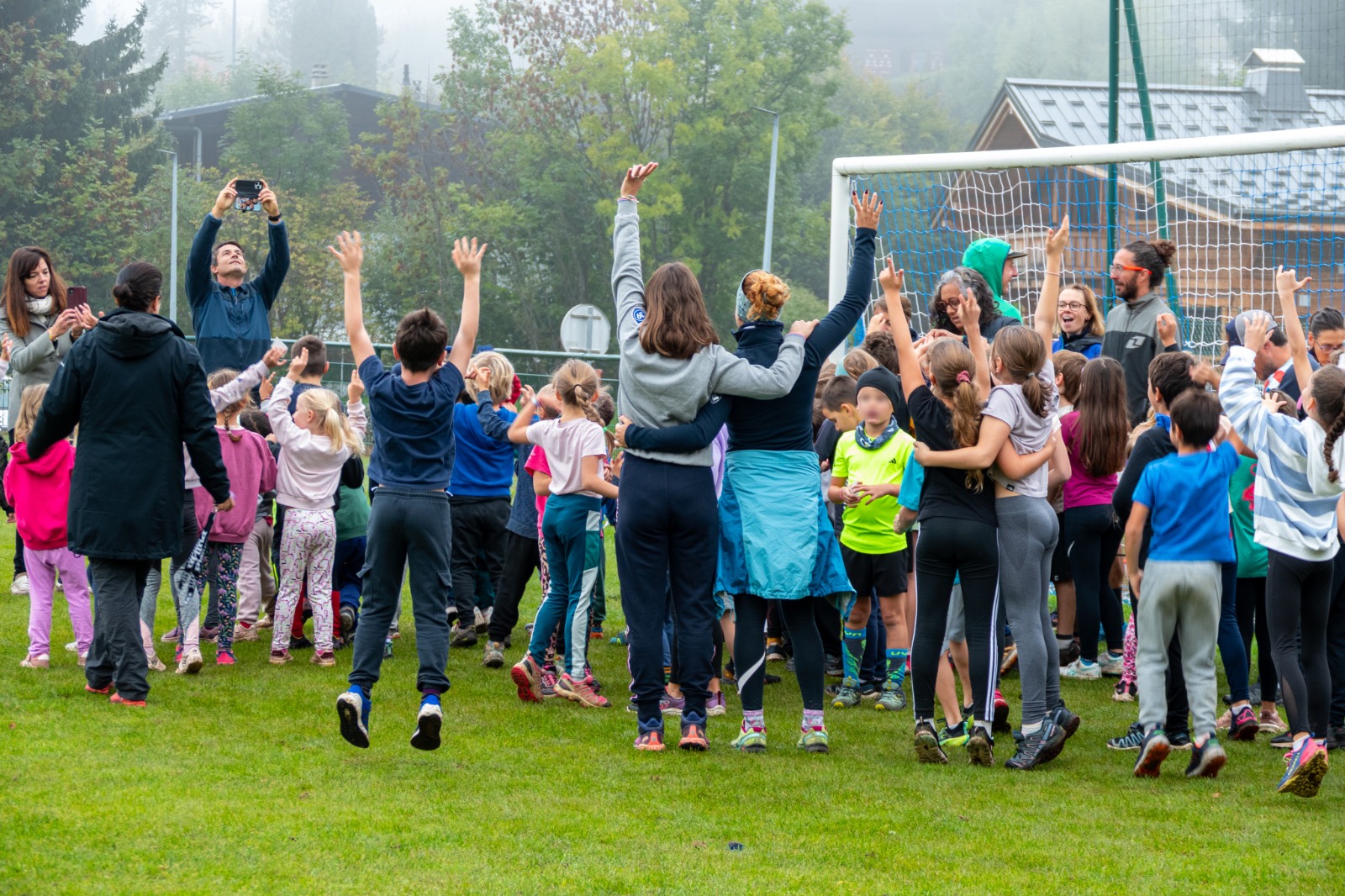 Ce matin, dans la brume automnal, les écoliers de l’école du Serveray, tous les élèves de la petite section de maternelle au CM2, accompagnés de quelques parents d’élèves, ont couru au stade de foot des Carroz pour un cross caritatif, comme ce fut le cas les années précédentes.